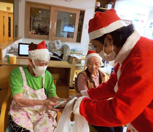 利用者様にも、サンタ帽子を被っていただき、雰囲気もバッチリ!!