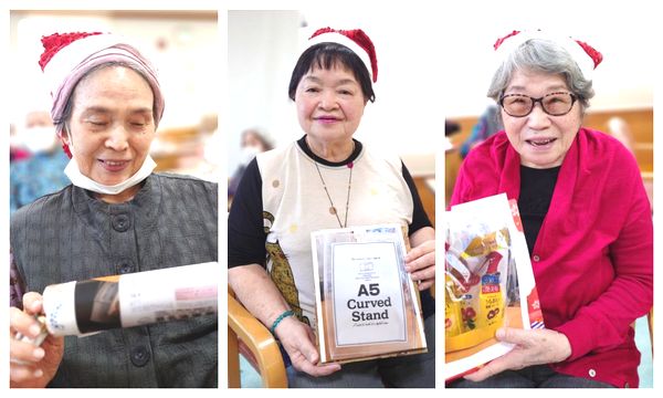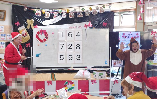クリスマス会では、サンタさんとトナカイさんによるビンゴゲームで、利用者の皆様は沢山の商品GET!!