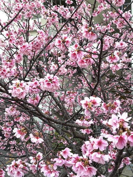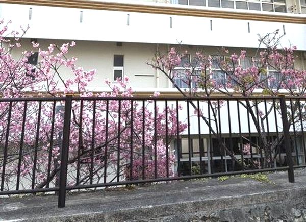 立春も過ぎた頃、宜野湾市我如古にある「介護総合施設ケアビレッジふれあい我如古」の目の前にある、嘉数中学校裏の桜が満開となりました! 夜はライトアップもされたりと、毎年とても素敵な風景となっています🌸