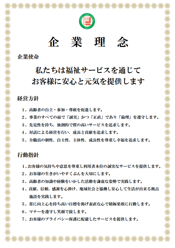 それが、「ふれあい介護センター」のすくぶん(使命)です